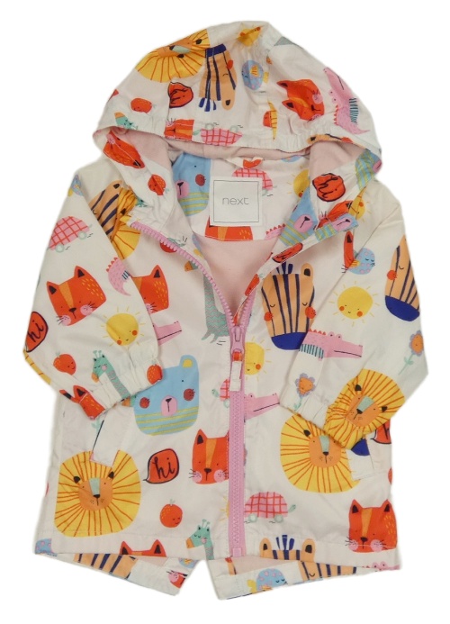 Bielo-farebná šušťáková jarná bunda so zvířaty a kapucňou Next