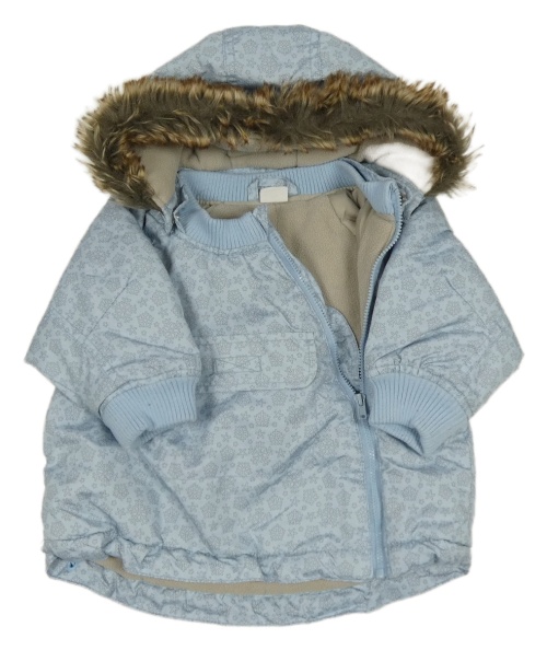 • Svetlomodrá vzorovaná šušťáková zateplená bunda s vločkami a kapucňou H&M