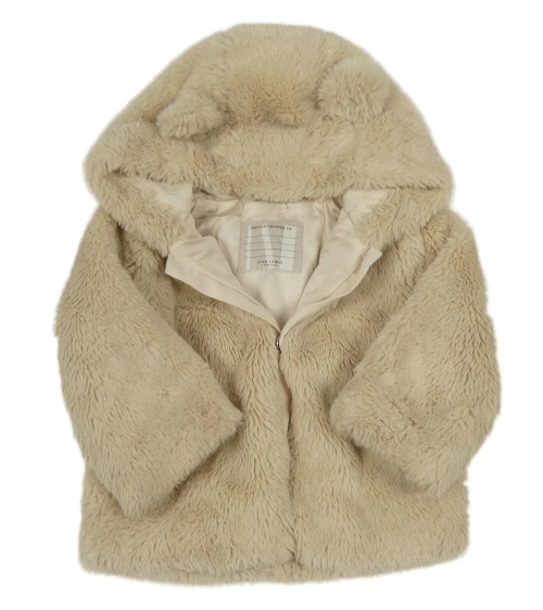 Smotanový kožušinový podšitý kabát s kapucňou s uškami John Lewis