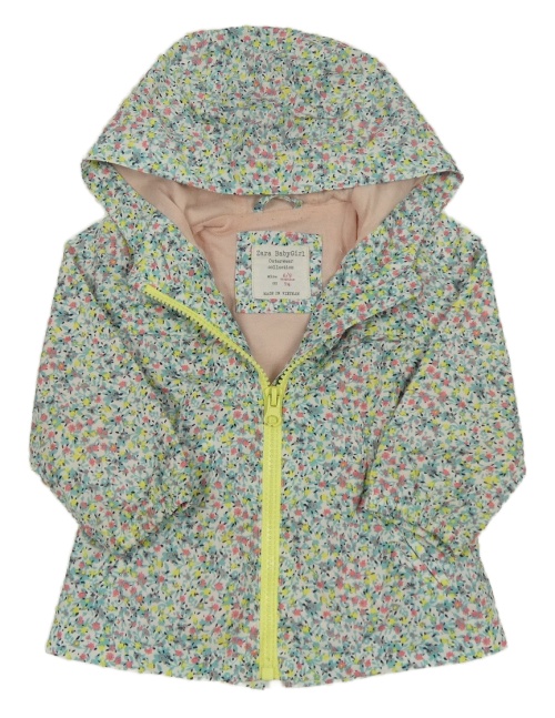 Biela kvetovaná šušťáková jarná bunda s kapucňou Zara