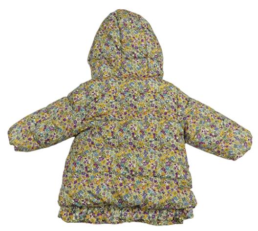 Smetanovo-farebná kvietkovana prešívaná šušťáková zimná bunda s volánikom a kapucňou Next