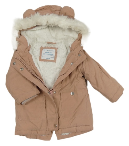 Pudrová šušťáková zimná parka s kapucňou s kožešinou a uškami PRIMARK