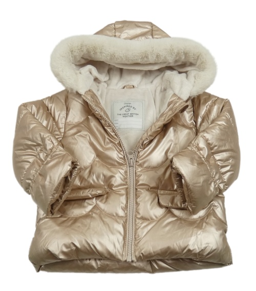 • Zlatá prešívaná šušťáková nepromokavá zimná bunda s kapucňou s kožešinou George