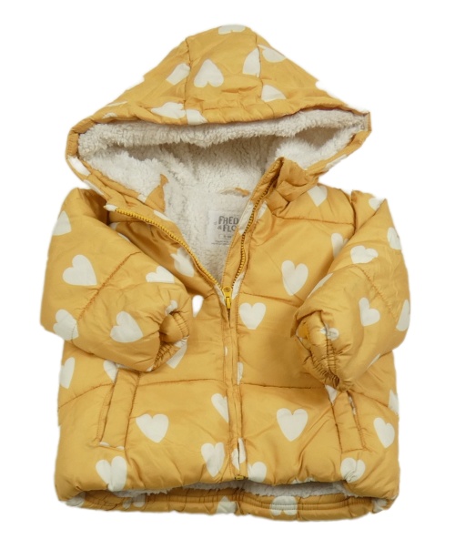 Okrová šušťáková zimná bunda so srdiečkami a kapucňou F&F