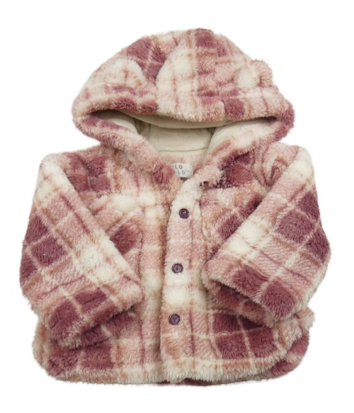 Starorůžovo-bílý kostkovaný chlupatý kabátek s kapucňou