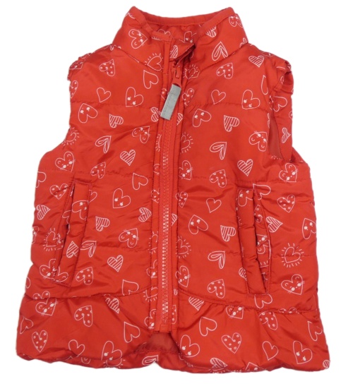 Červená šušťáková zateplená vesta so srdiečkami Topolino