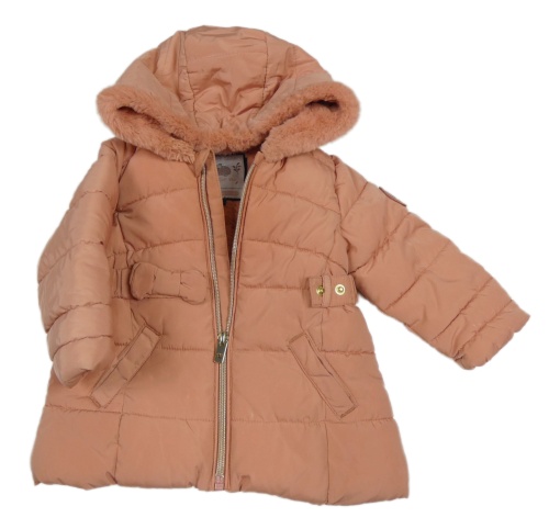Svetloružová šušťáková prešívaná zateplená bunda s opaskom a kapucňou
