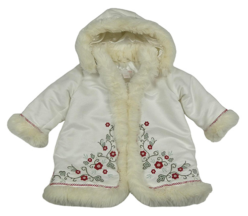 Biela zateplená bunda s výšivkami květů a kapucňou H&M