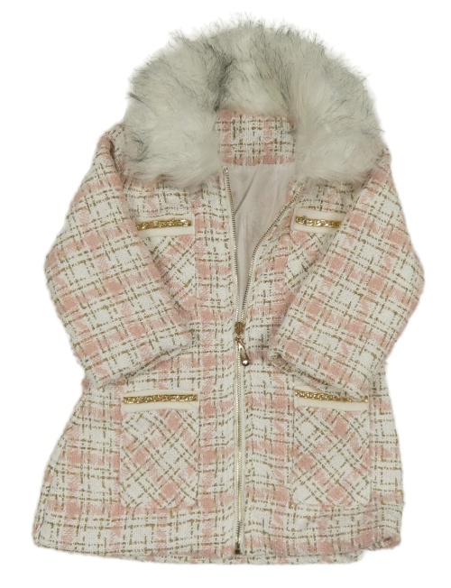 Ružovo-bielo-zlatý vzorovaný podšitý kabát s kožešinou