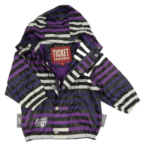 Tmaovmodro-fialovo-biela pruhovaná nepromokavá jarná bunda s kapucňou