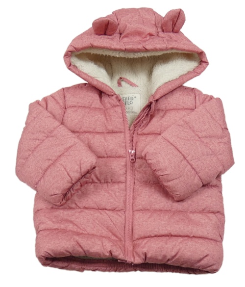 Ružová melírovaná prešívaná šušťáková zimná bunda s kapucňou s uškami F&F