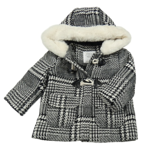 Čierno-biely vzorovaný pletený podšitý kabát s kapucňou s kožešinou F&F