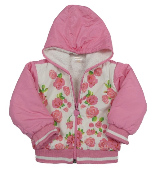 Svetloružová -biela kvetovaná šušťáková zateplená bunda s kapucňou