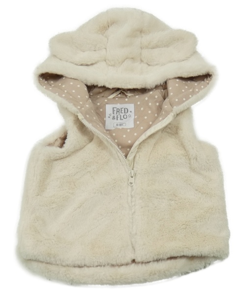 Smotanová kožušinová podšitá vesta s kapucňou F&F