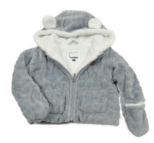 • Šedý vzorovaný plyšový zateplený kabátek s medvedíkom a kapucňou s uškami C&A