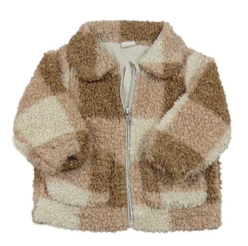 • Smetanovo-světlehnědo-hnedá kockovaná huňatá podšitá bunda s golierikom H&M