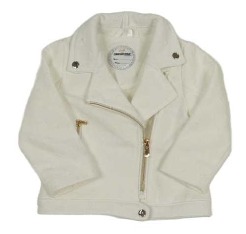 Biely vzorovaný zateplený krivák so srdiečkami a golierikom ORCHESTRA