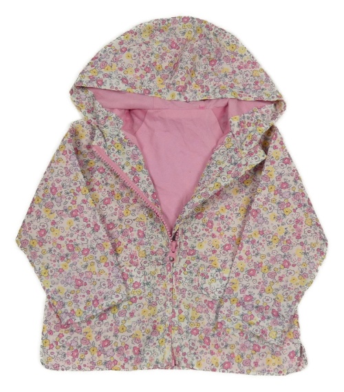 Svetloružová kvetovaná šušťáková jarná bunda s kapucňou