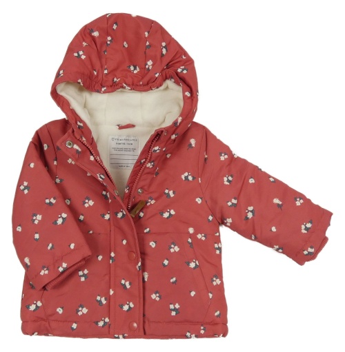 Hrdzavá šušťáková zimná bunda s kvietkami a kapucňou PRIMARK