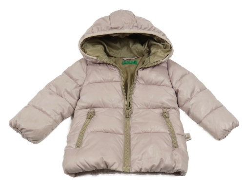 Pudrová prešívaná šušťáková zimná bunda s kapucňou Benetton