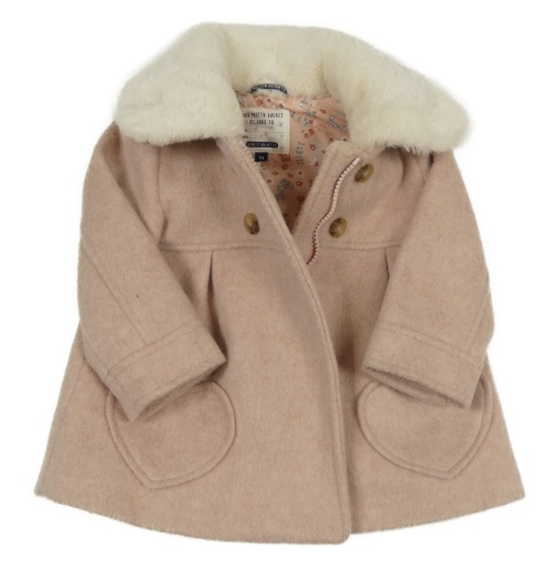 Pudrový melírovaný flaušový podšitý kabát s kožušinovým golierikom C&A