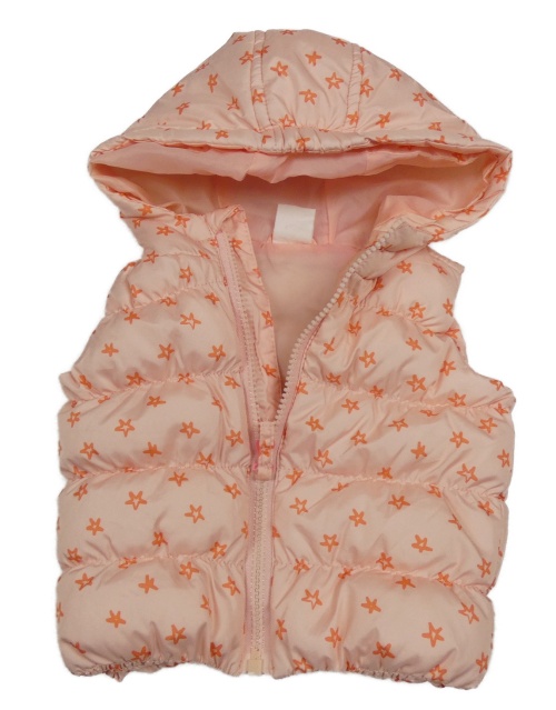 Ružová šušťáková zateplená vesta s hviezdami a kapucňou Hema