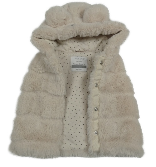 • Smotanová kožušinová zateplená prepínaci vesta s kapucňou s uškami Primark