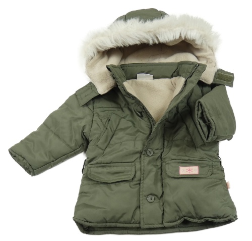 Khaki šušťáková zateplená bunda s kapucňou s kožešinou