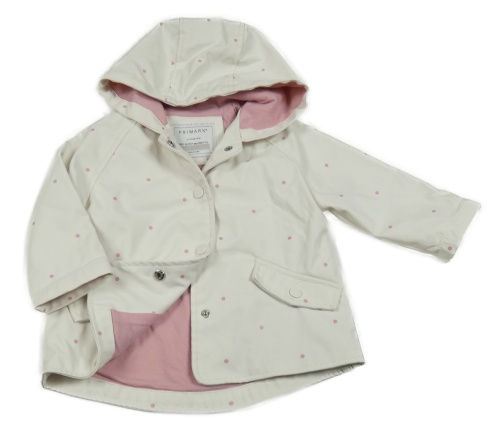 Biela nepromokavá jarná bunda s bodkami a kapucňou Primark
