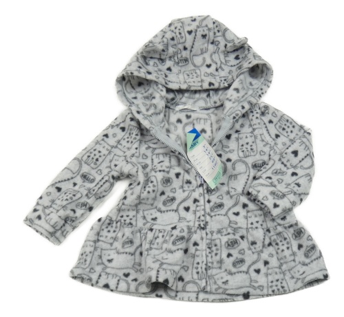 Nové - svetlosivá melírovaná fleecová bunda s kočičkami a srdiečkami a kapucňou s uškami PEPCO