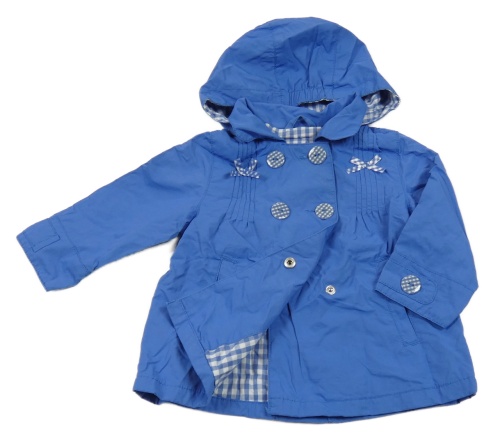 Modrý šušťákový jarný kabát s mašľami a golierikom a kapucňou C&A