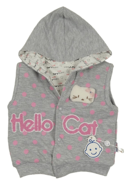 Nové - Sivá melírovaná bodkovaná ý tepláková zateplená vesta s mačkou a kapucňou