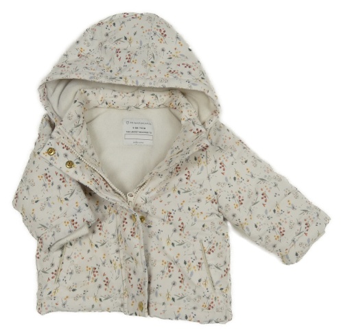Biela kvetovaná šušťáková zateplená bunda s kapucňou Primark