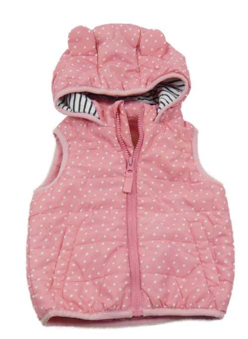 Svetloružová bodkovaná á šušťáková zateplená vesta s kapucňou Topomini