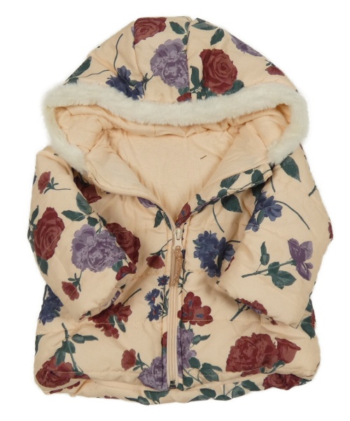 Broskvová šušťáková prešívaná zimná bunda s kvetmi a kapucňou Rock a Bye Baby