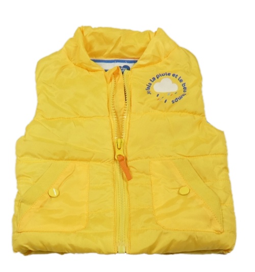 Žltá šušťáková zateplená vesta s nápisom