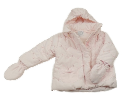Svetloružová šušťáková zateplená bunda s výšivkami a kapucí + rukavice