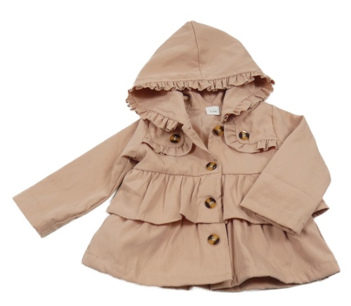 Starorůžový jarní kabátek s volánikmi a kapucňou