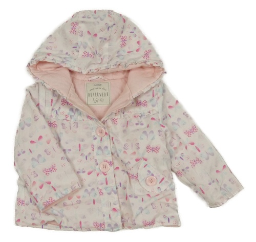 • Bielo-ružovo-modrá šušťáková lehce zateplená bunda s motýlikmi a kapucňou George