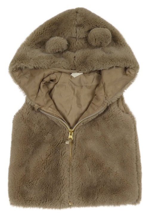 Béžová kožušinová podšitá vesta s kapucňou H&M