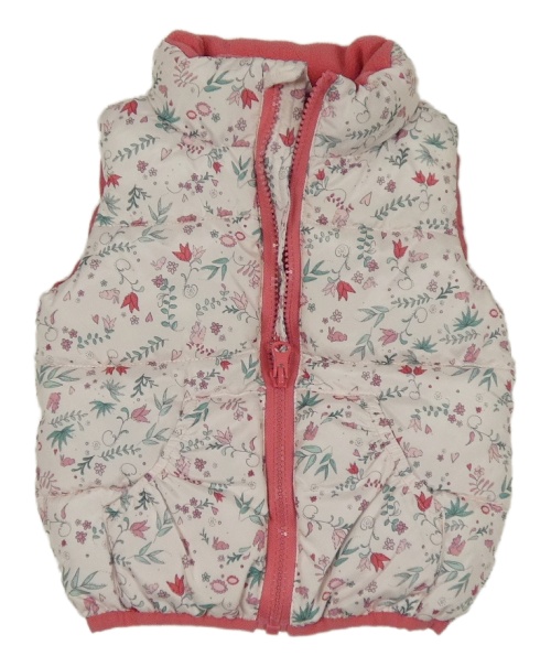Bielo-ružovo-zelená kvetovaná šušťáková zateplená vesta Dopodopo