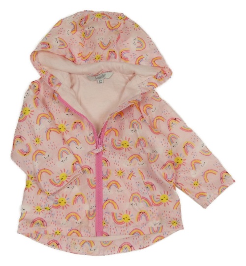 Ružová šušťáková jarná bunda s duhami a kapucňou Peacocks
