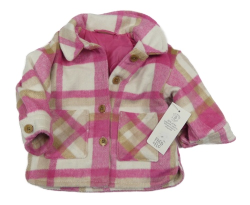 Nové - Bielo-ružovo-béžová kockovaná flaušová podšitá bunda F&F