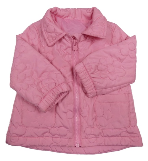 • Ružová šušťáková jarná zateplená bunda s prešívanymi kvety a golierikom St. Bernard