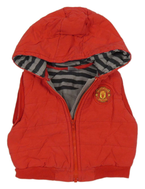 • Červená šušťáková futbalová zateplená vesta s kapucí Manchester United
