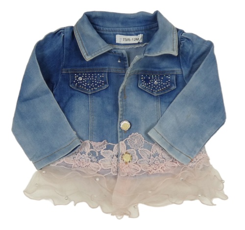 • Světlemodro-ružová rifľová tepláková bunda s kamienkami a svetloružovou čipkou