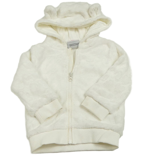 Bílý plyšový bomber so srdiečkami a kapucňou s uškami Topomini