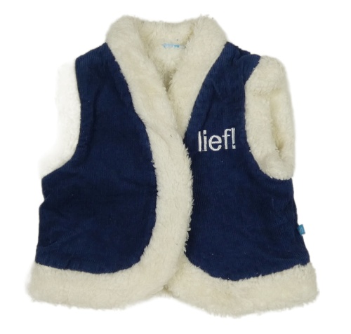 Tmavomodrá menšestrová zateplená vesta s nápisom