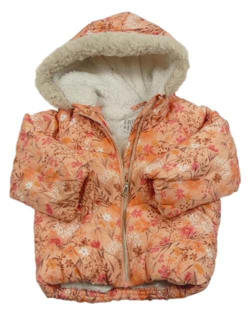 Broskvová kvetovaná šušťáková zimná bunda s kapucňou F&F