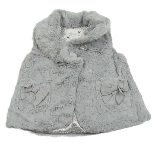 Sivá kožušinová podšitá vesta s mašľami Matalan
